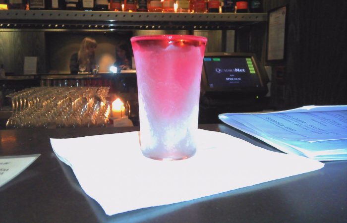 The décor is simple but well thought out, candles flicker in corners where the clientèle sup drinks contently and feast on the complimentary popcorn while staff serve their extensive menu of flavoured vodkas with a slickness that can’t fail to impress.
