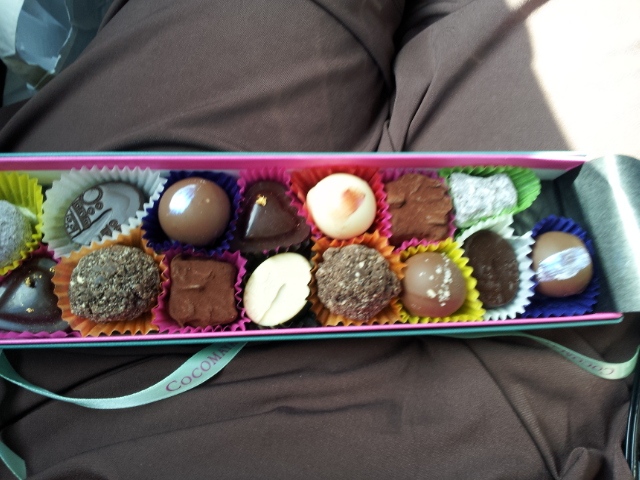 Pouring over the chocolate for some time, ginger, salted caramel, peanut and tonka bean all made the grade, as did heart shaped rose, lychee and raspberry. Then it was on to the truffles and with whisky, champagne, jasmine and the ol’ reliable milk snugly in the box, my selection was complete.
